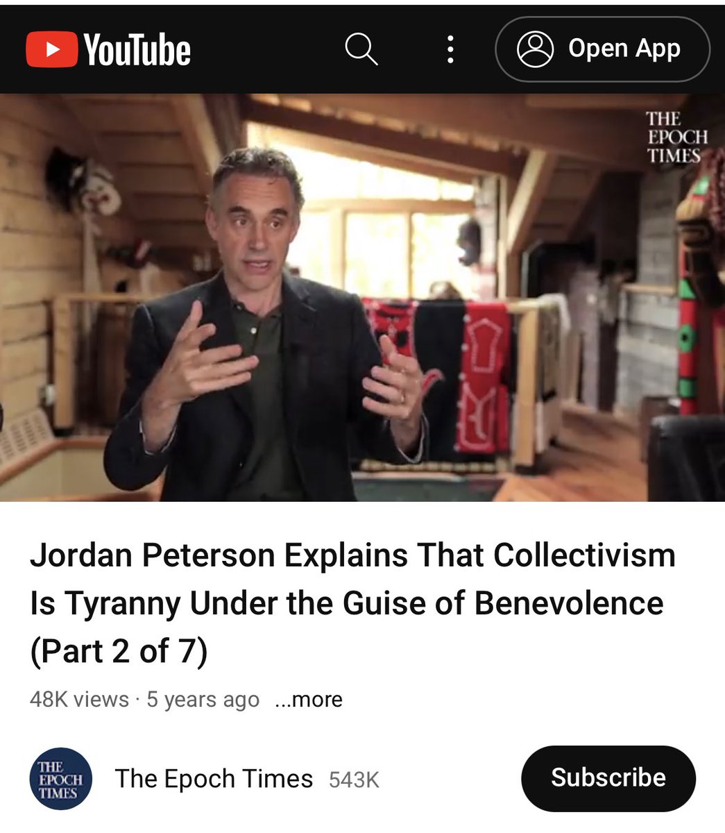 But if you suggest another morality to enforced, Peterson answers that collectivism is tyranny.