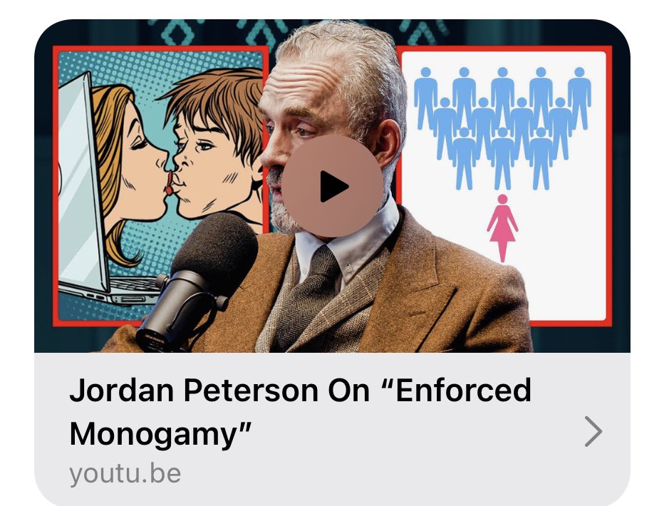 They asked Peterson if monogamy be enforced? He says, no that would be tyranny it should be enforced by society, so then he is believes in legalised polygamy.