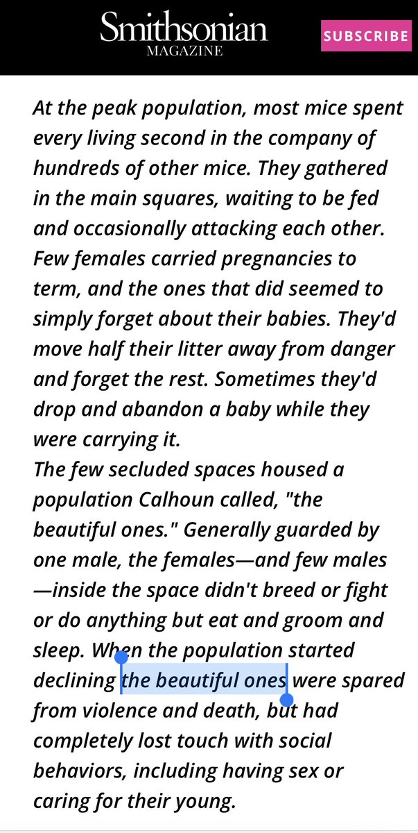 “Once the event horizon of the behavioral sink was passed, the end was certain.”