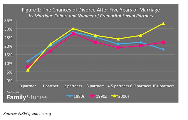 The reality is, the chance of divorce increases with the number of partners before marriage, for both MEN AND WOMEN. It takes two.