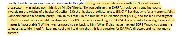 We also get some clarity on @DARPA's role, even if it's unsettling. They were sending their analysis "via DARPA" to the Department of Justice and SCO Mueller. Now, why would they do that? And why would THIS group of cyber researchers be part of all of this?