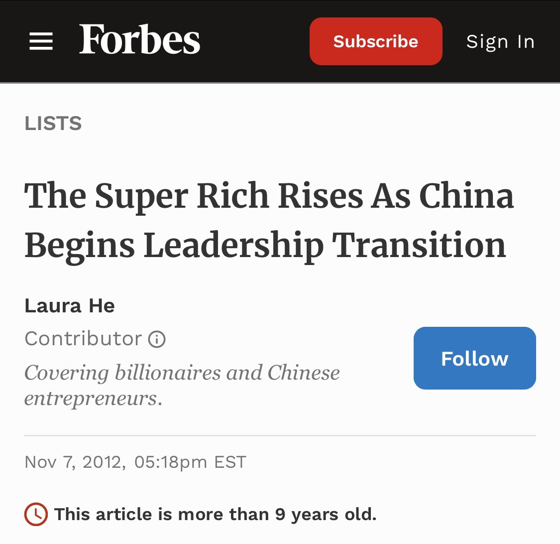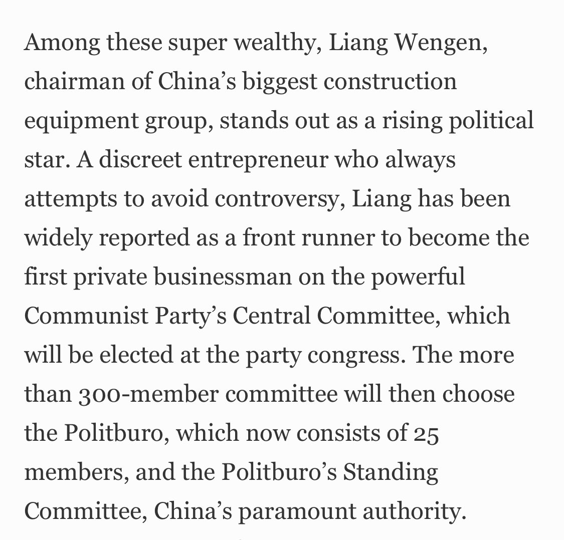 The naivete of this take might make some of them cringe in hindsight. Forbes predicted that construction billionaire Liang Wengen, a "rising political star", would be the first capitalist appointed to the Central Committee. Whoops!