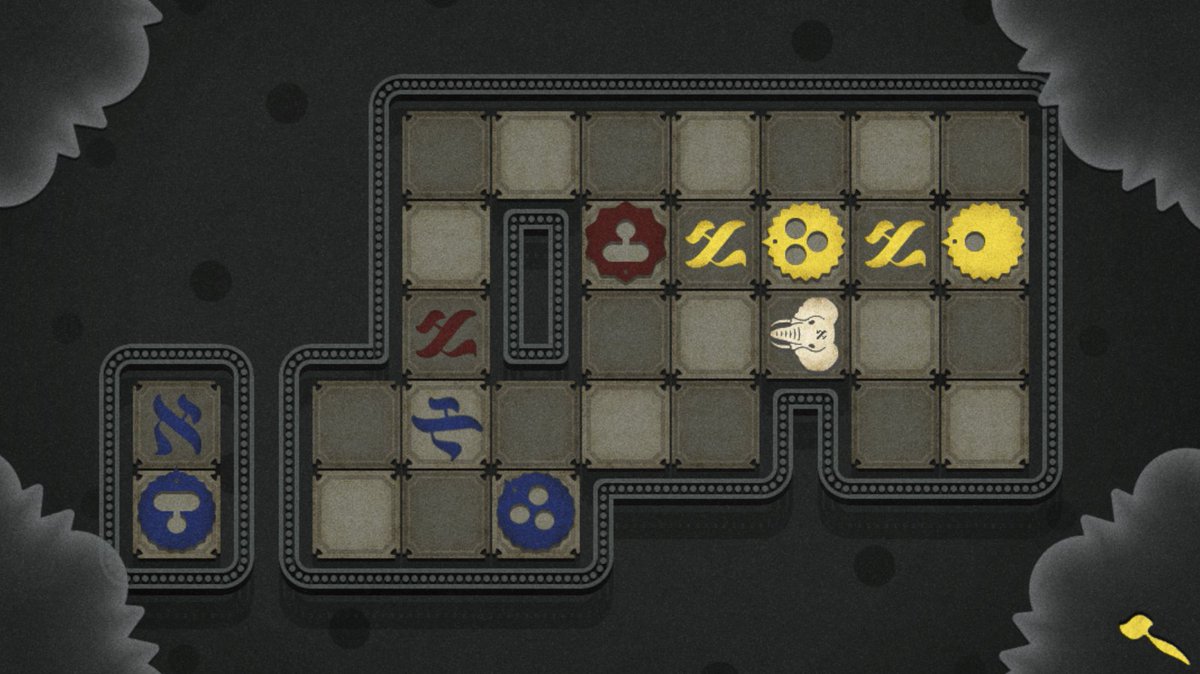 Alephant [★]. Overwhelming state space, some really cool tricks and levels (like pic), but I can't quite keep up. Last level was so demoralizing, spending hours building out a solution that's barely not possible, then looking it up to see I understood literally nothing relevant.