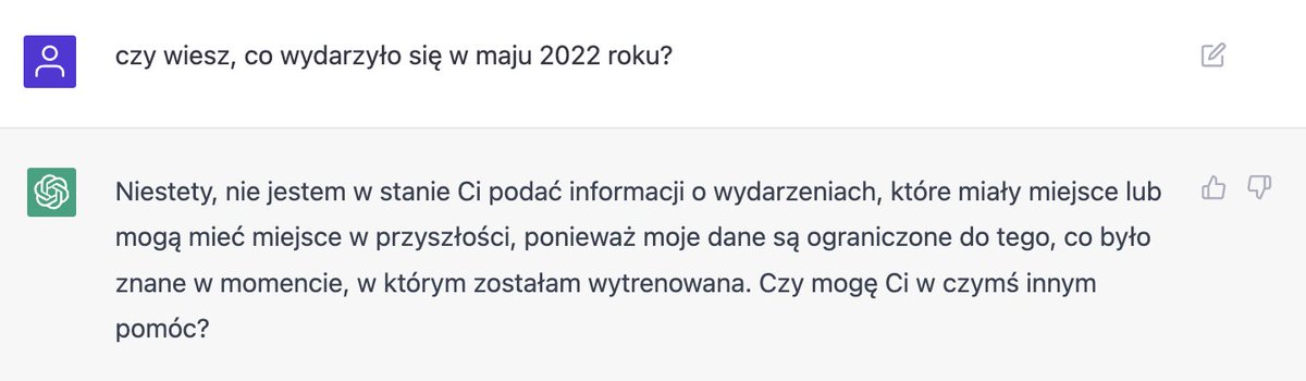 Ostatecznie nie mam pojęcia, jaki jest realny zakres wiedzy dla GPT-3 🤷♂️