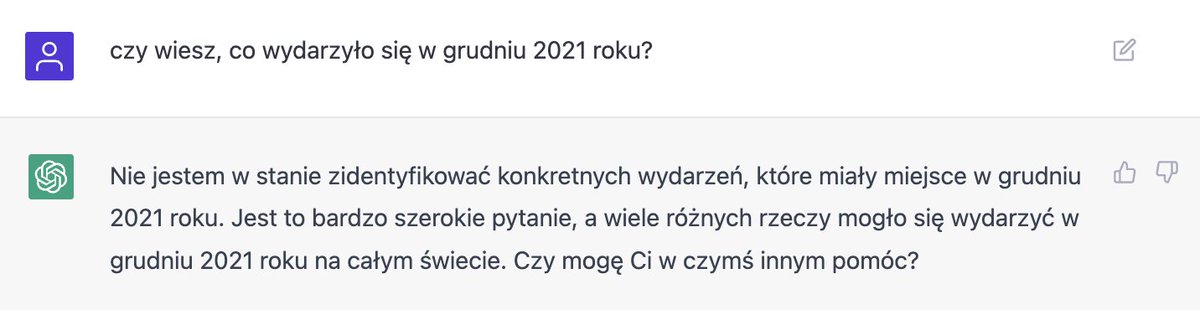 Wniosek? Świadomość ChatGPT kończy się teoretycznie 31 grudnia 2021 😎