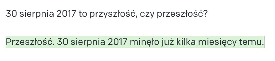 Bardzo zaciekawiła mnie jednak kwestia samoświadomości modelu, jeśli chodzi o czas.
