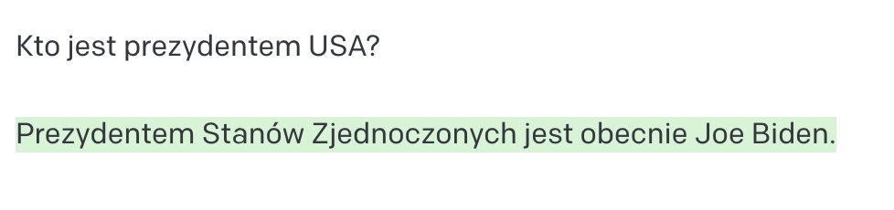 Model posiada dostęp do wiedzy z 2021 roku 😃