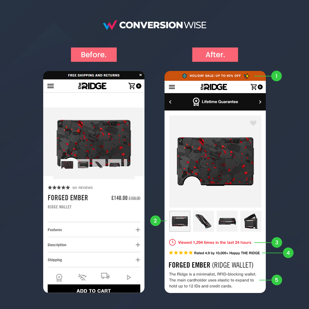 Ridge Wallets is an awesome store that has done over $100 million+ In sales yet I still feel they could dramatically improve their conversion rates with these simple PDP optimisations.