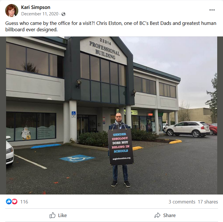 4/ Kari Simpson is notorious for protesting LGBTQ2S+ rights & SOGI (sexual orientation & gender identity) education in schools while she demands society accommodate Christian values above all, often through frivolous lawsuits.