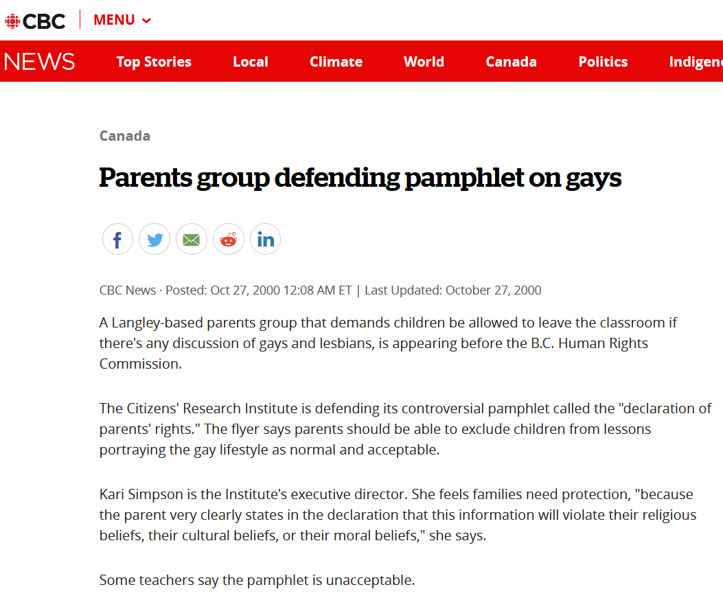 6/ A @UBC MA thesis has a great synopsis of activities from Kari & others in the BC Christian far-right through the late 90s and early 00s against the @bctf's LGBTQ2S+ initiatives & for @Surrey_Schools's book ban. The thesis includes CFI's Declaration: open.library.ubc.ca/media/stream/p…