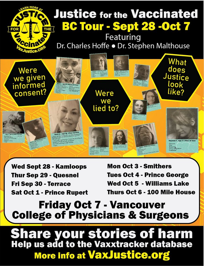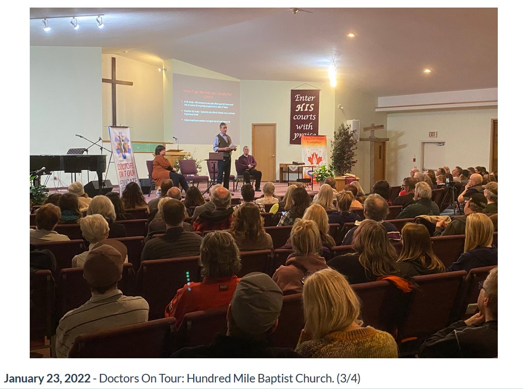 13/ FrontLine Canada is another a program of CVA. They made fake religious vaccine exemptions (Christians only) & ran Doctors on Tour, a disinformation parade that sent antivaxx MDs like Charles Hoffe, Stephen Malthouse & guests around BC. Events were almost always at churches.