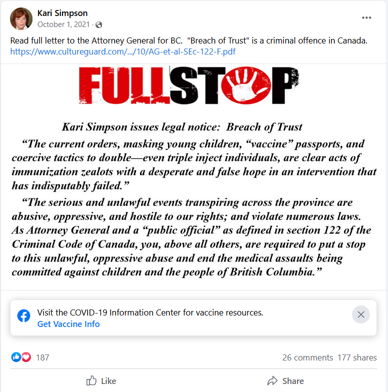 1/20 A 🧵on Culture Guard's Kari Simpson & transphobia in BC's Convoy movement. It's no surprise that Convoyers attack drag events & rally against LGBTQ2S+ communities because the movement continues to be influenced by transphobic Christofascist "activists" like Kari. #bcpoli