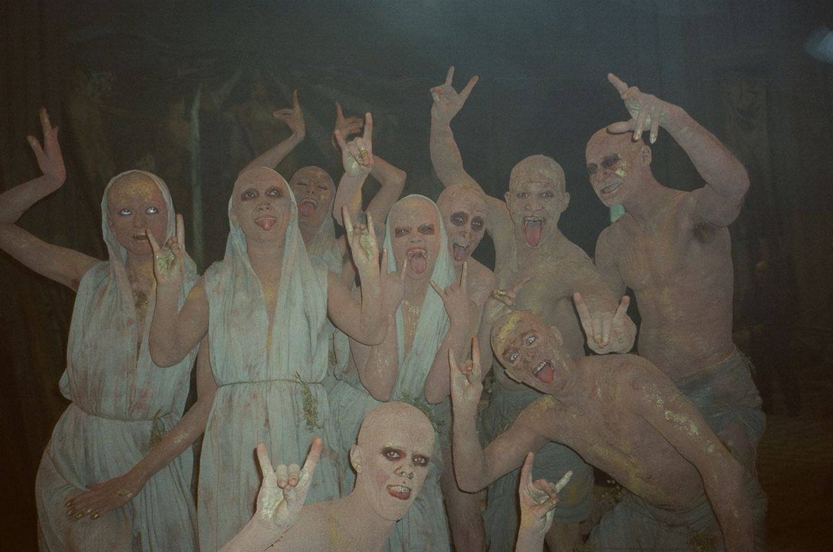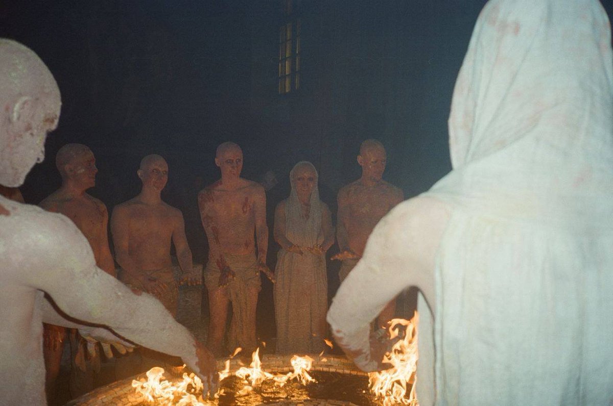 Начались съемки. Три смены. Все снимались ночью. В апреле. В храме. А мы голые и в гриме.