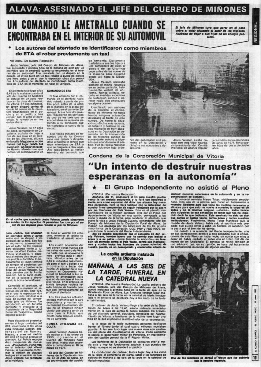 #Taldiacomohoy de 1980 #ETA asesinó en Vitoria al jefe del Cuerpo de Miñones Jesús Velasco, lo hicieron delante de dos de sus cuatro hijas, Begoña e Inés de 12 y 16 años.