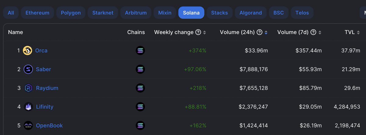 We might never know what if Uniswap v3 has token incentives, but which dex dominates the Solana? Orca, which is almost equal to Uniswap V3+ Token incentives. Kyberswap, an EVM dex that also combines V3 and incentives, already flip sushiswap.(3/n)