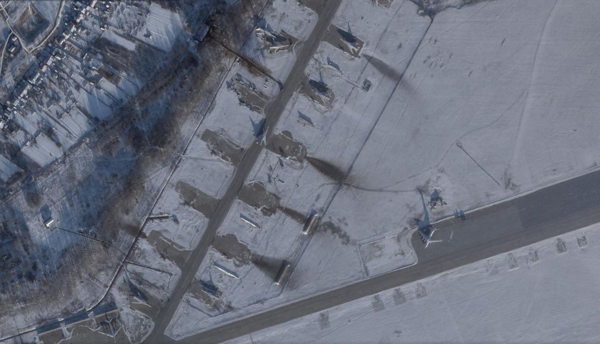 1/6 Aftermath of the Ukrainian UAV attack against Dyagilevo air base near Ryazan on new @planet imagery, taken on Dec 7th. Damaged Tu-22M disappeared, leaving only a shadow on the tarmac. At least 9 other Tu-22m bombers moved away from the base, as well as some other planes.