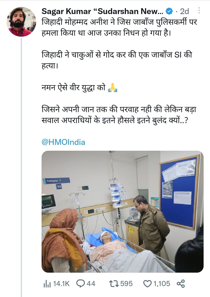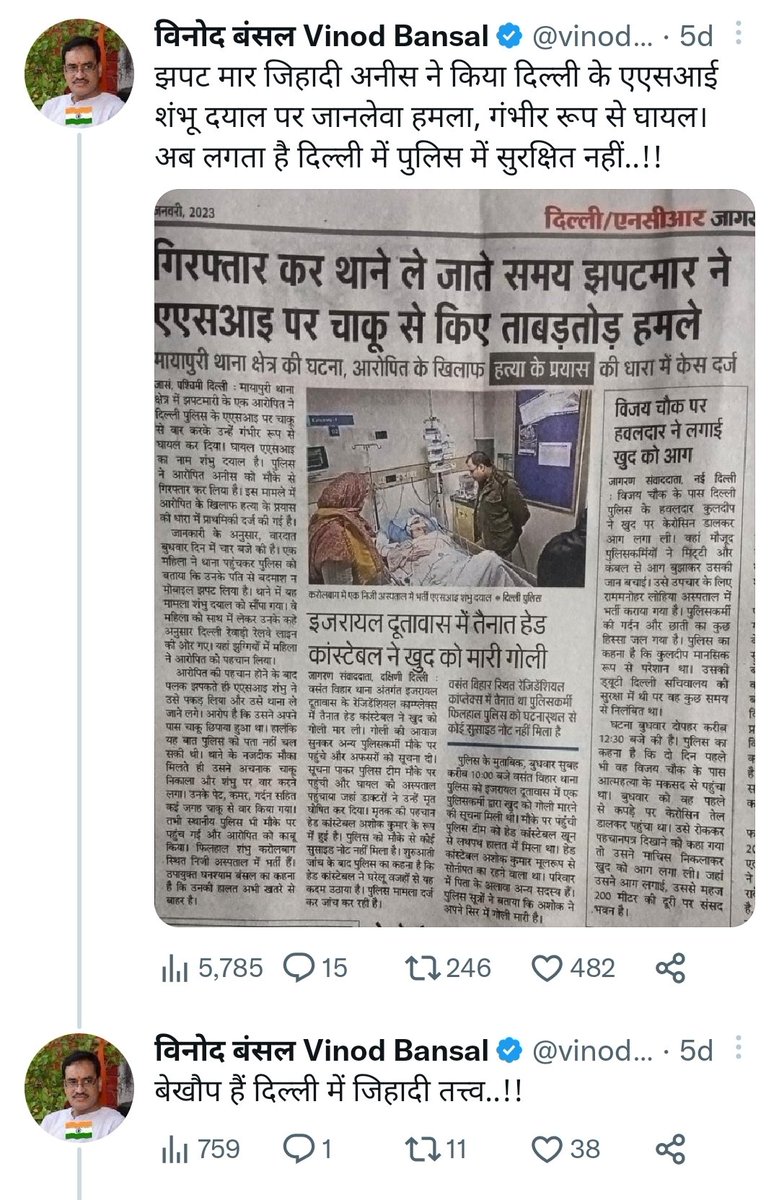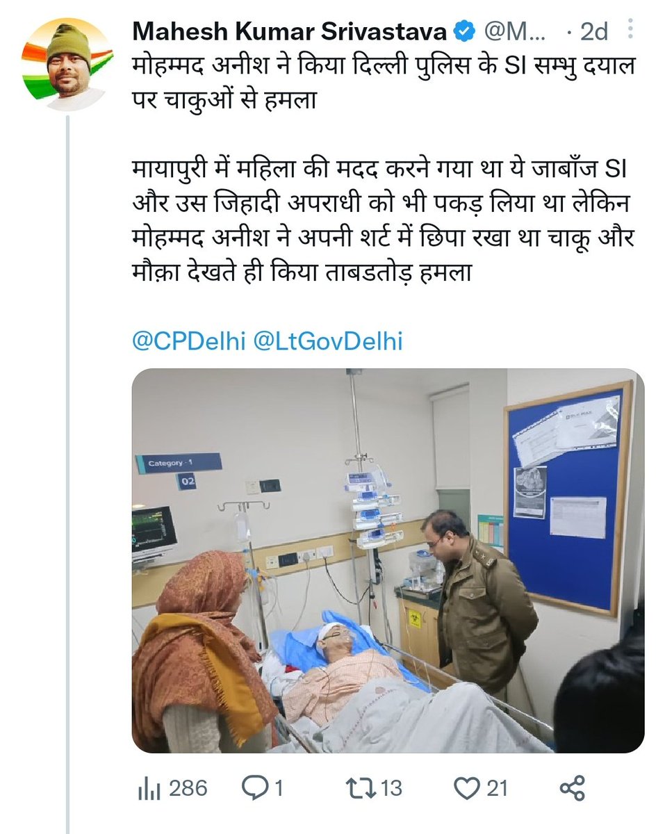 Times Now Navbharat @TNNavbharat also mentioned in it multiple times that a suspect named 'Mohammad Anis' stabbed ASI Shambhu Dayal. twitter.com/i/web/status/1…