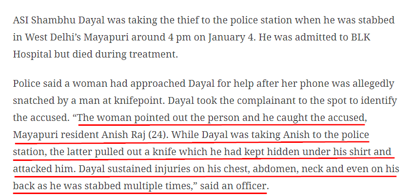 On 4th Jan, ASI Shambhu Dayal was stabbed multiple times with knife by an accused in Delhi's Mayapuri area. He was admitted to hospital after being stabbed on neck, chest, stomach & back. On 8th, ASI Shambhu Dayal succumbled to his injuries. Thread 👇👇