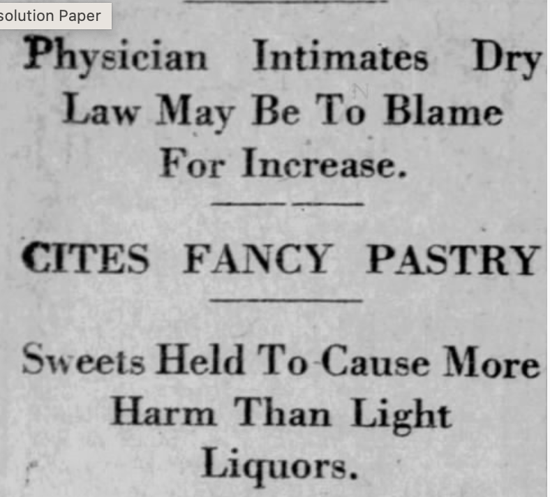 Interestingly, McCann and others speculated that part of the problem could be traced to prohibition, with Americans turning to sugar when they couldn't drink.