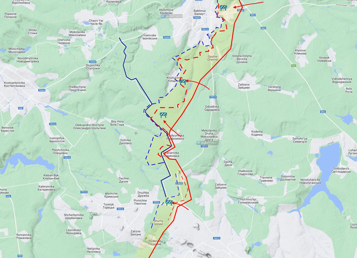 The AFU repulsed attacks in the area of Klishchiivka, Kurdyumivka and Mayorsk. There are pro-ru reports of fighting inside Klishchiivka, but there is no visual confirmation. They also claim advance in the Opytne area.