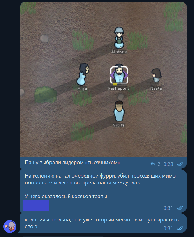 В итоге по очереди выращивание деревьев (важная технология в пустошах, где их почти нет, а древесина нужна) исследовали Ваня и Паша. Выглядело это так: два дурака держали книжку по садоводству вверх ногами и пытались объяснить её содержание Ане-садовнице.