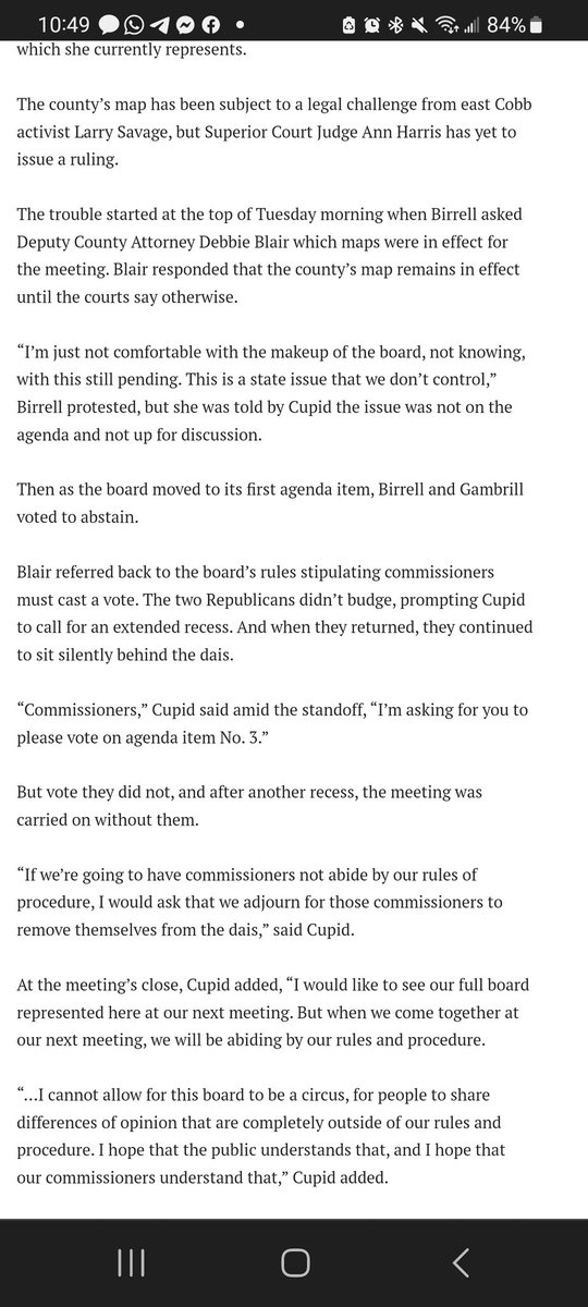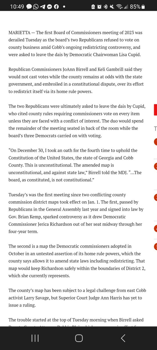 Because the State Legislature made one of the Cobb County Commissioner Districts more of a 'swing' district, our current county chair, a Democrat named Lisa Cupid, chose to disregard the maps drawn by the GA Legislature and