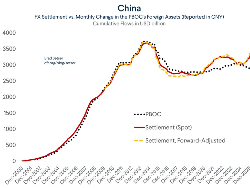 My latest blog looks both at how fx settlement (a measure that includes the state banks) has displaced the PBOC's own reported reserves as the best metric for Chinese intervention & lat some of SAFE's balance sheet mysteries