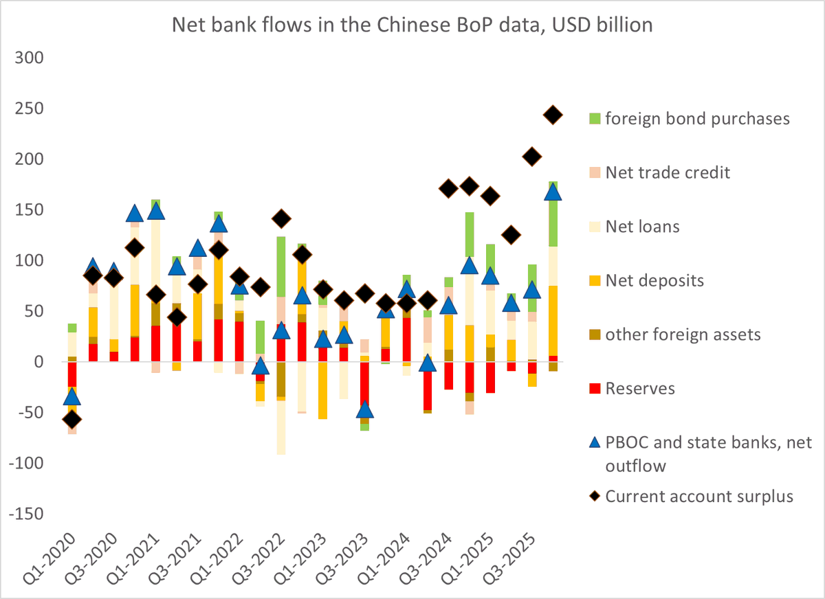 That was true in q4 -- most of China's foreign bond purchases are done by the banks, so there was $170b or so outflow via the banks in q4 alone. That is about 2/3rds of China's reported q4 current account surplus