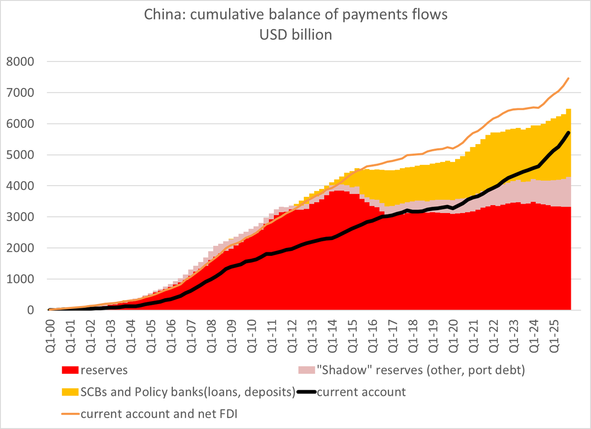 As I mentioned on Wednesday, there is a $3 trillion gap between China's accumulated current account surplus since the pandemic and China's unchanged reserves (and a corresponding gap in visible flows into the US)