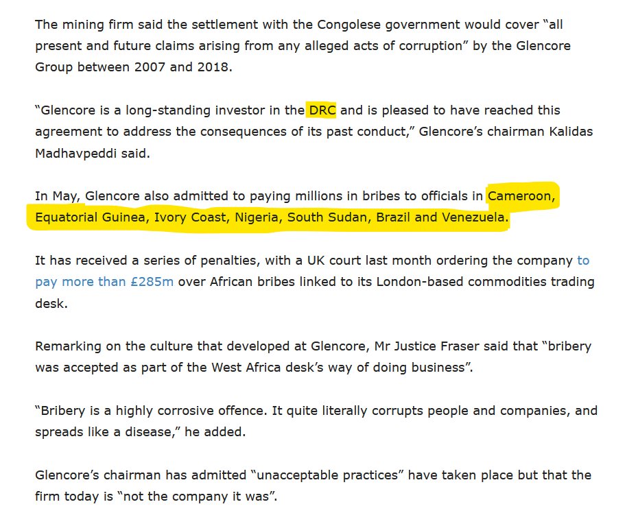 So the big companies can claim they don't pay bribes. Glencore & their competitors pay the bribes for them!