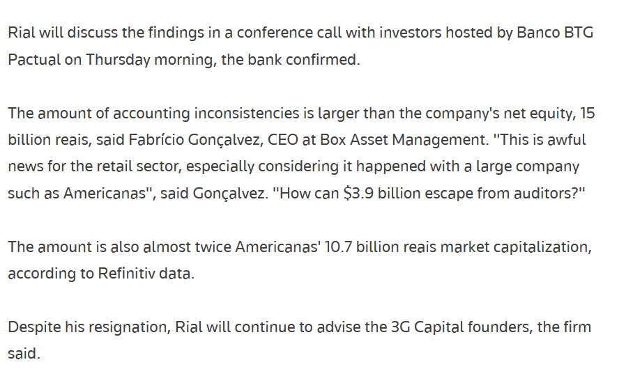 That's interesting, 3G the parent company of the Americanas SA is much more interesting. #ButNothingsHappening reuters.com/business/brazi…