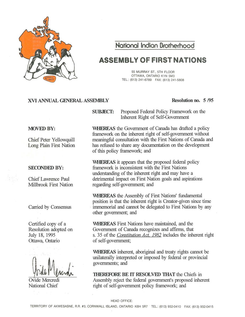Unfortunately, after 1993 federal elxn, PM Chretien broke that promise when his gov't imposed his 1995 "Inherent Right to Self-Gov't" Policy, which only recognized "Inherent Right" in an abstract sense & had pre-conditions 2 negotiations to convert Indian Bands/Reserves into 3/8