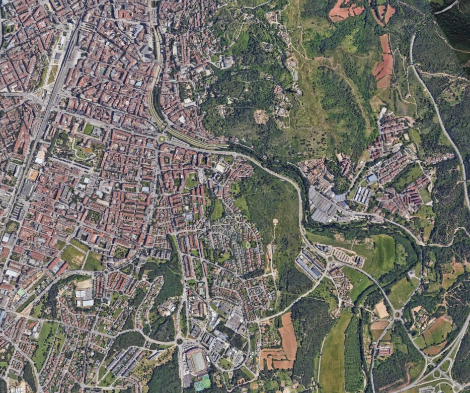 Como se ve en la imagen, el barrio Font de Pólvora (a la derecha) está absolutamente aislado de la ciudad por una carretera, un río, un polígono industrial y hasta un cementerio