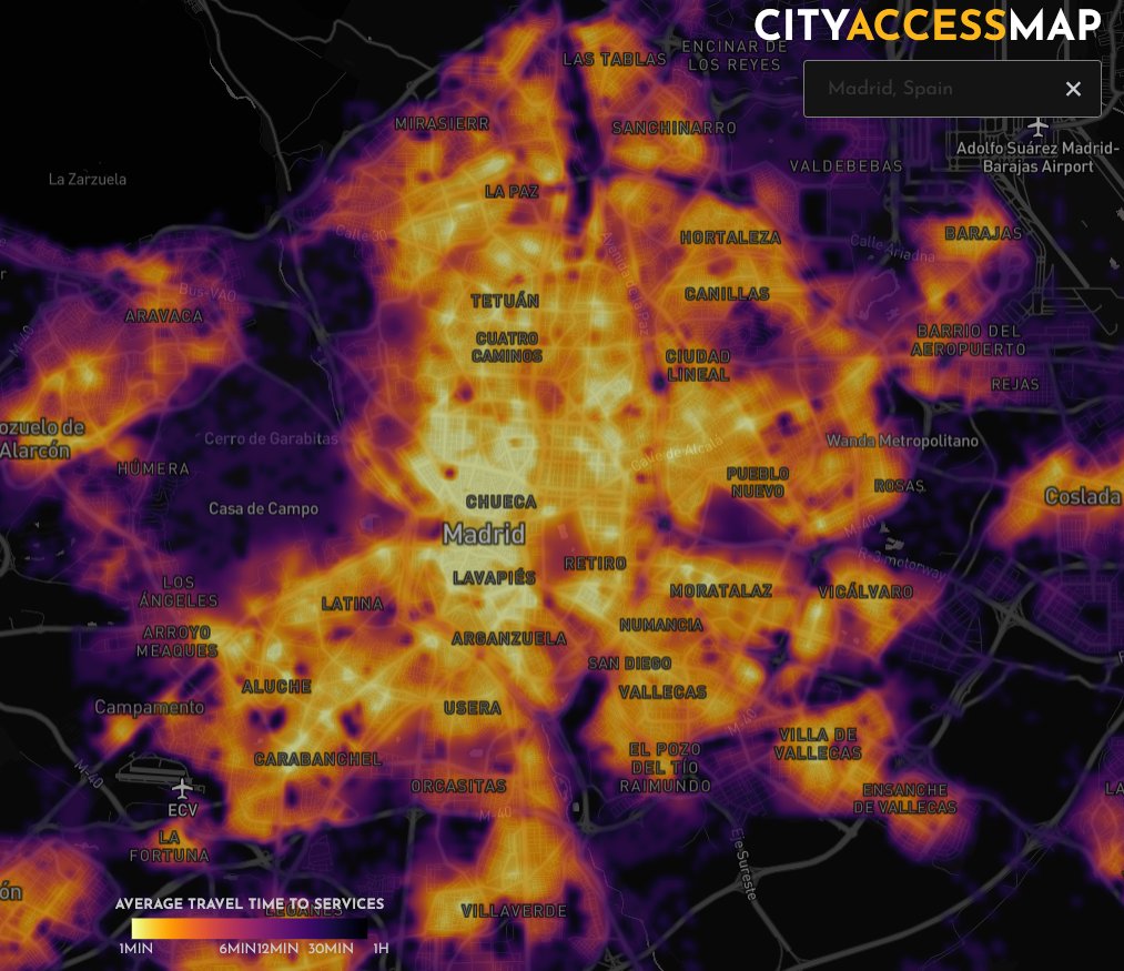 En Madrid el 95% de la población tiene acceso a servicios básicos en menos de 15 minutos↙️