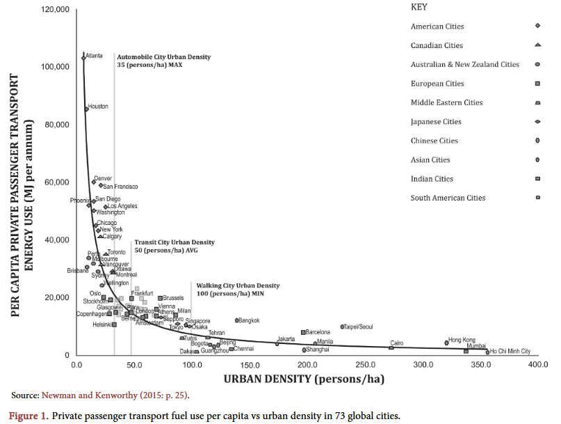 Aquí se evidencia la estrecha relación entre densidad y gasto de energía para el transporte👇