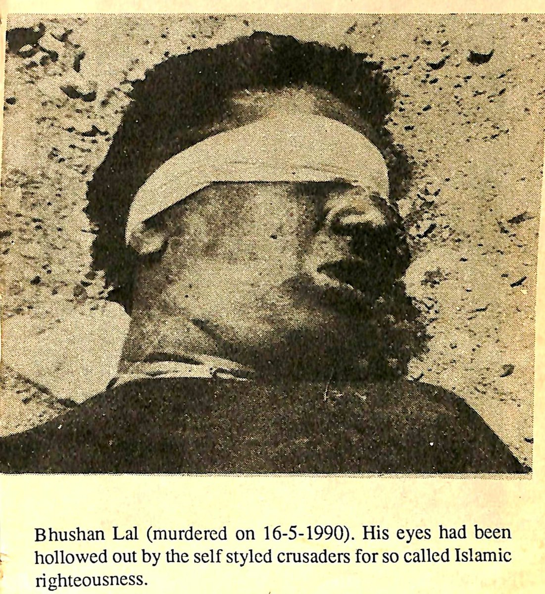 Bhushan Lalji was murdered by terrorists of Yasin Malik's JKLF but not before they tortured him severely, gorging his eyes, while he was still alive.This is how KASHMIR started its "war for independence", by murdering innocent non-Muslim Kashmiri civilians.
