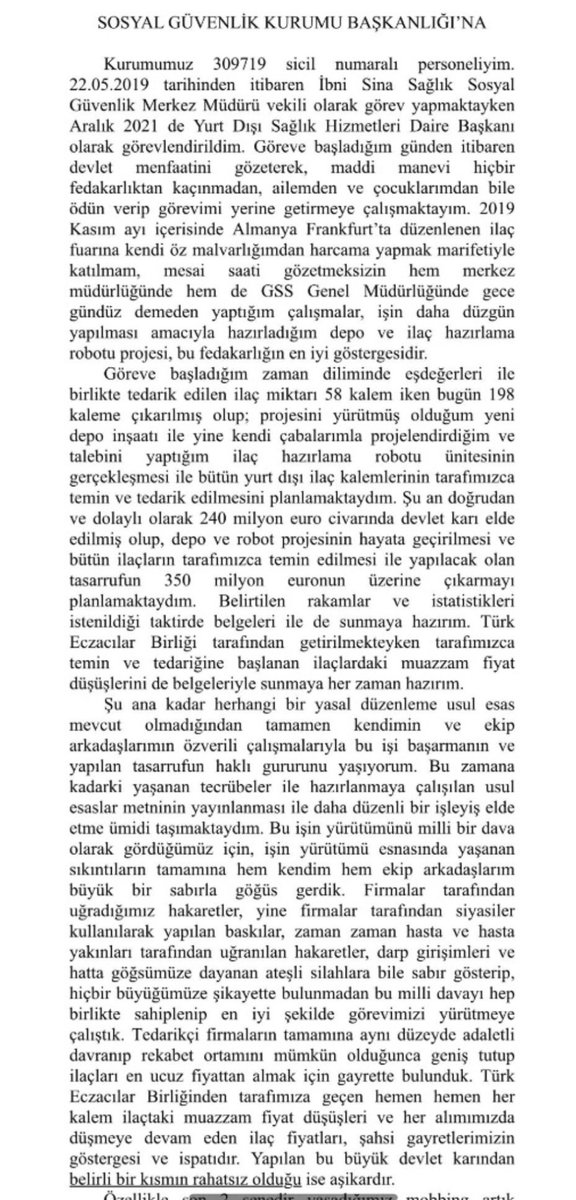 İlk ulaştığım evrak SGK’daki bir bürokratın istifa mektubu oldu.