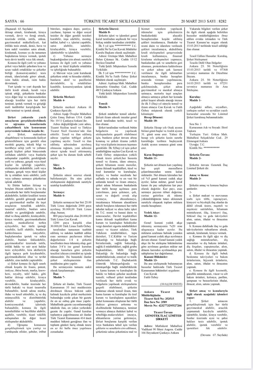 9-Bahse konu GENOTEK firmasının kurucusu Ticaret Sicil Gazetesi’ne göre Birol Taşkara.