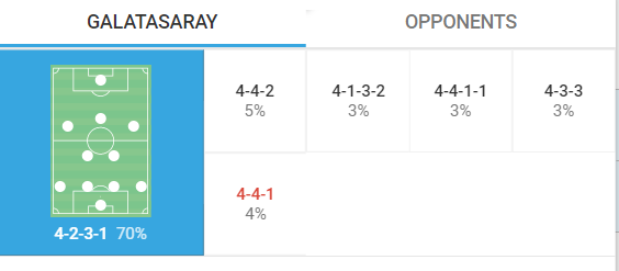 Cimbom'la ilk sezonunda Okan Buruk, takımın performansını etkiliyor. İlkelerini ve taktiklerini sezonun büyük bölümünde 4-2-3-1 etrafında yoğunlaştırıyor ve aşağıdaki grafiğin gösterdiği gibi ara sıra 4-4-2 veya 4-1-3-2 şekillerine dönüşüyor.