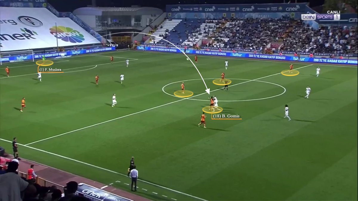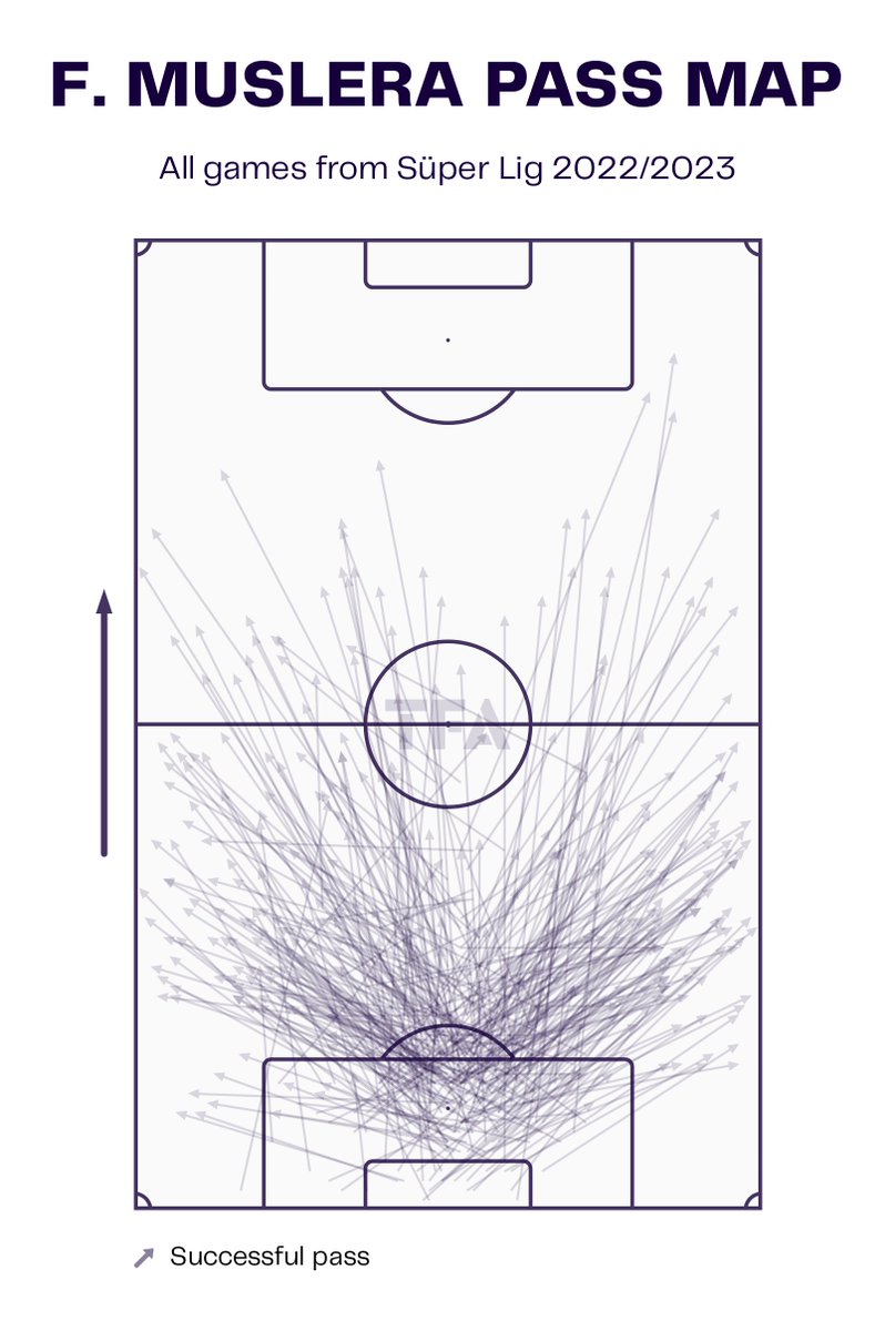 Zaman zaman uzman kaleci Fernando Muslera, forvete veya doğrudan görevi rakibin arka hattını esnetmek olan geniş kanat oyuncularına yaptığı önemli uzun mesafeli paslar nedeniyle bu sezon oyunun bu aşamasında önemli bir role sahip.