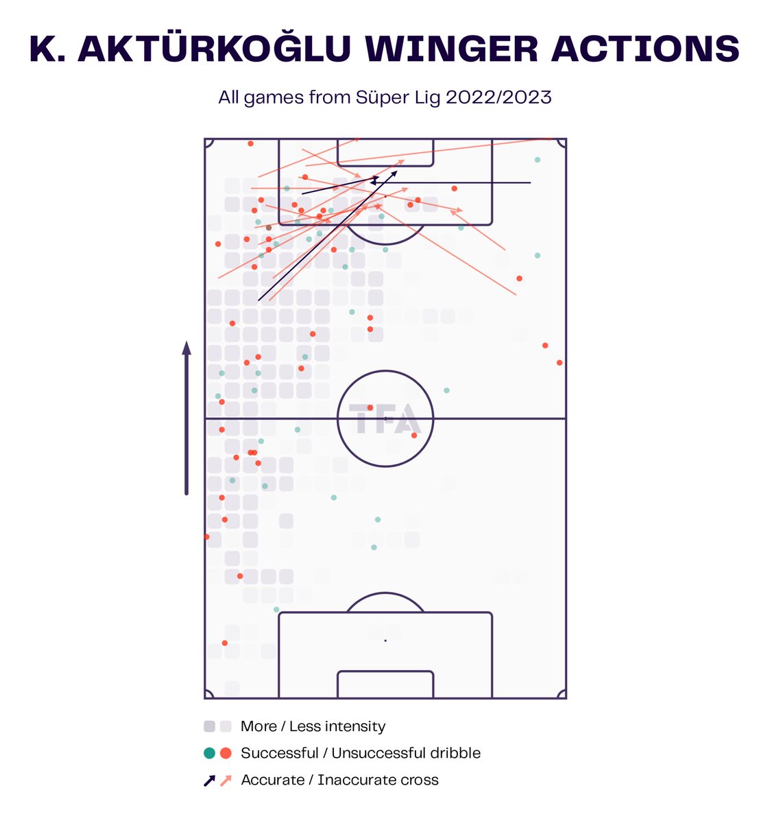 26 - Başakşehir'e karşı 7-0 kazandıkları muazzam galibiyetten başka bir hücumu göstermektedir. Top alındıktan sonra diğer oyuncular da defans oyuncularını şaşırtmak için boşluklara koşarak kontraya destek verdi, Mauro Icardi, Kerem Aktürkoğlu'na süper geri pas atarak golü yazdı.