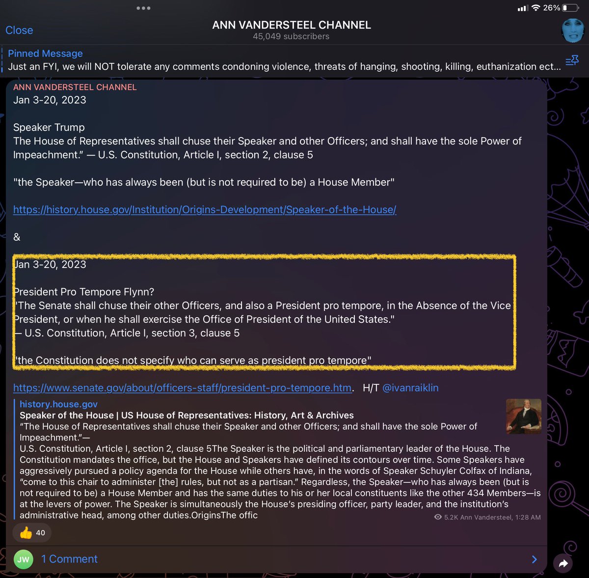 Here’s that time a few months ago Ann Vandersteel was pushing for @GenFlynn as President pro tempore of the Senate in conjunction with insurrection planner and probable pipe bomber Ivan Raiklin.