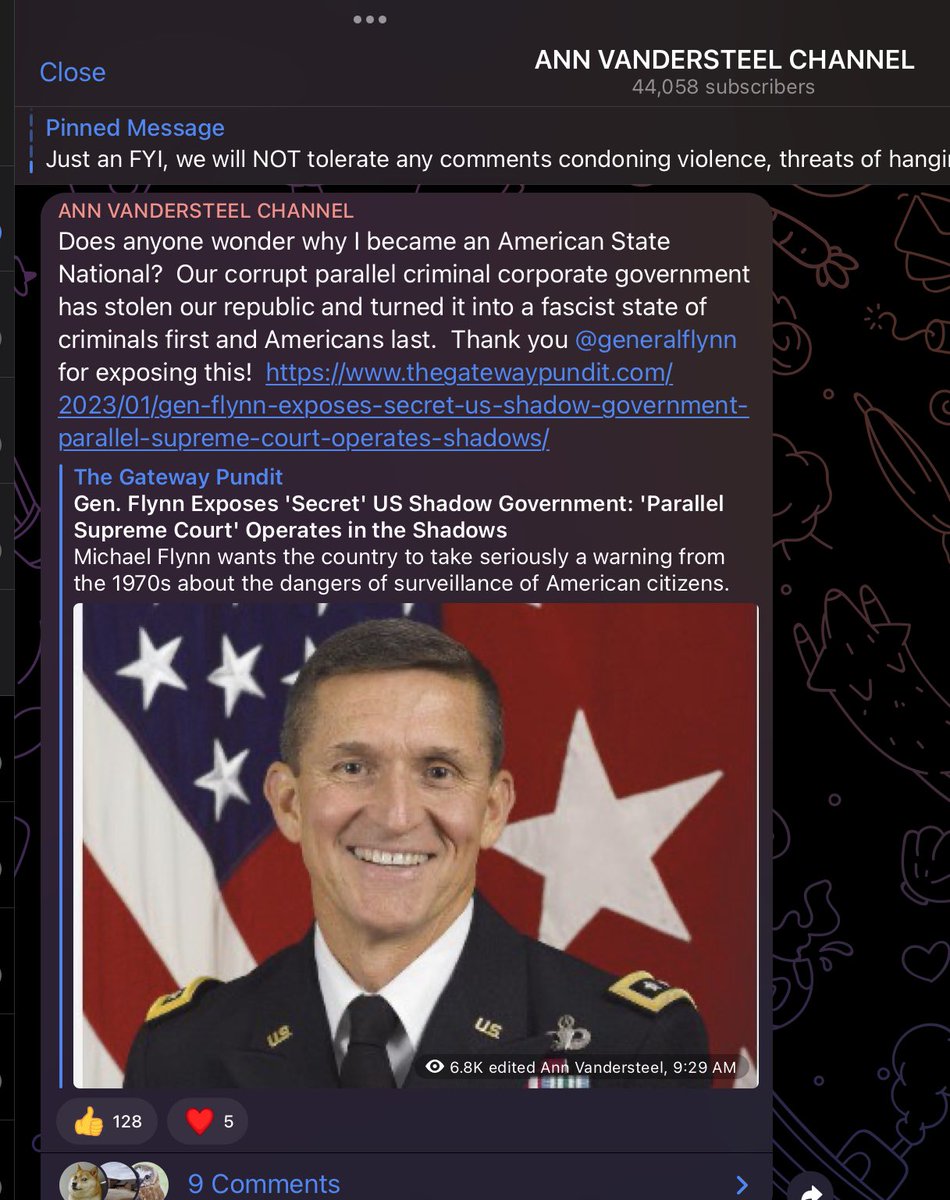From Ann Vandersteel’s batshit Telegram channel.