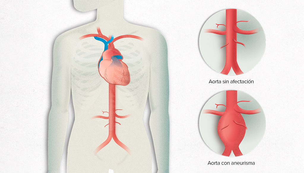 El aneurisma de aorta se produce cuando el diámetro de dicha arteria (la más gruesa del organismo) aumenta en algún punto por debilidad de su pared muscular. Si no es tratado puede romperse el vaso con un alto grado de letalidad por hemorragia interna