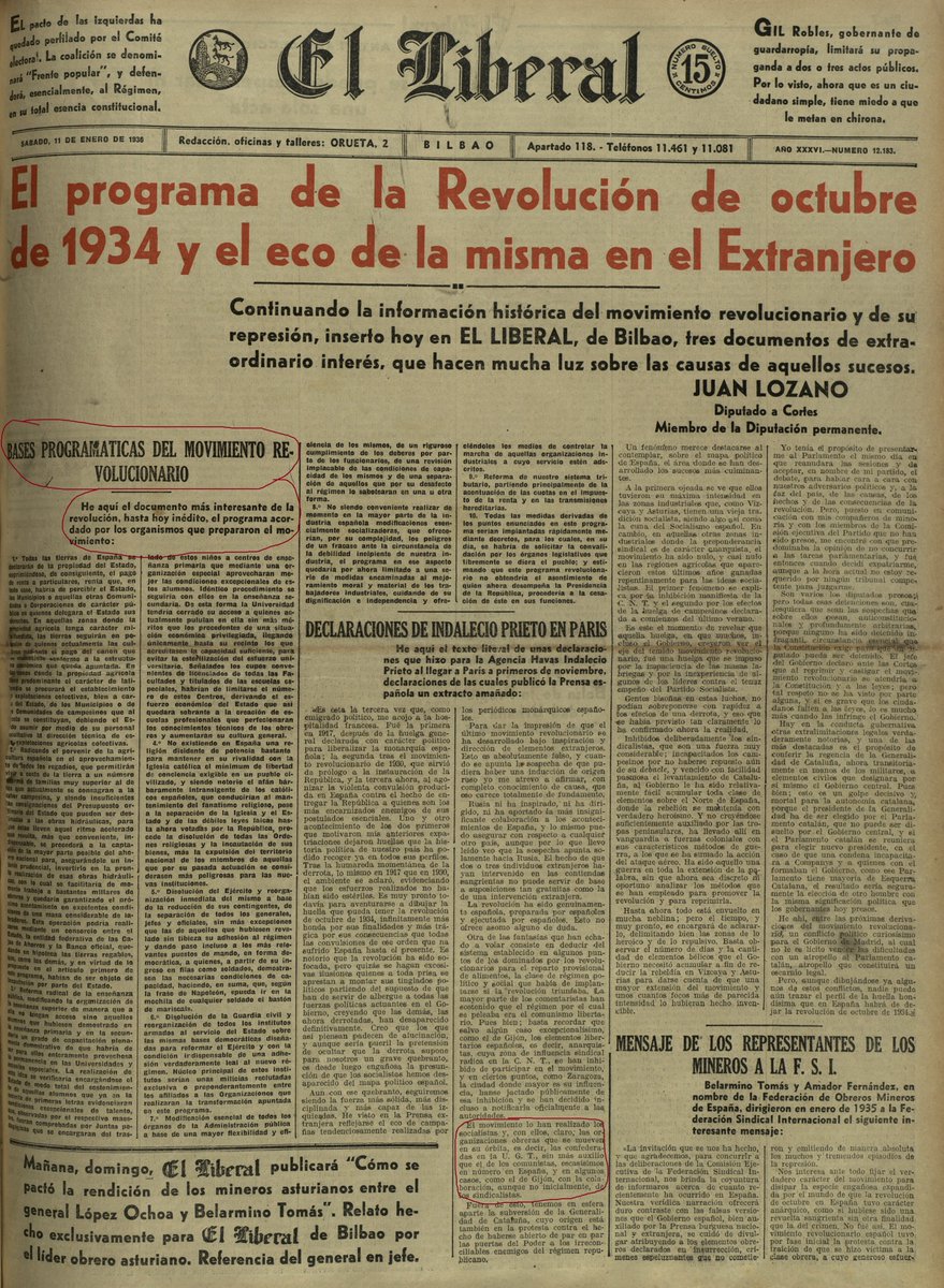 En IMG la publicación original, en el diario El Liberal, diario bajo la batuta del propio Indalecio Prieto.