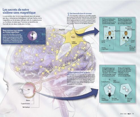 D’ailleurs, si l’odorat a le nez, et la vue l’œil, quel serait l’organe de la réception du champ magnétique ? Comment expliquer le fait que nous n’ayons aucune conscience de cette information ? Et à quoi celle-ci pourrait-elle bien nous servir?