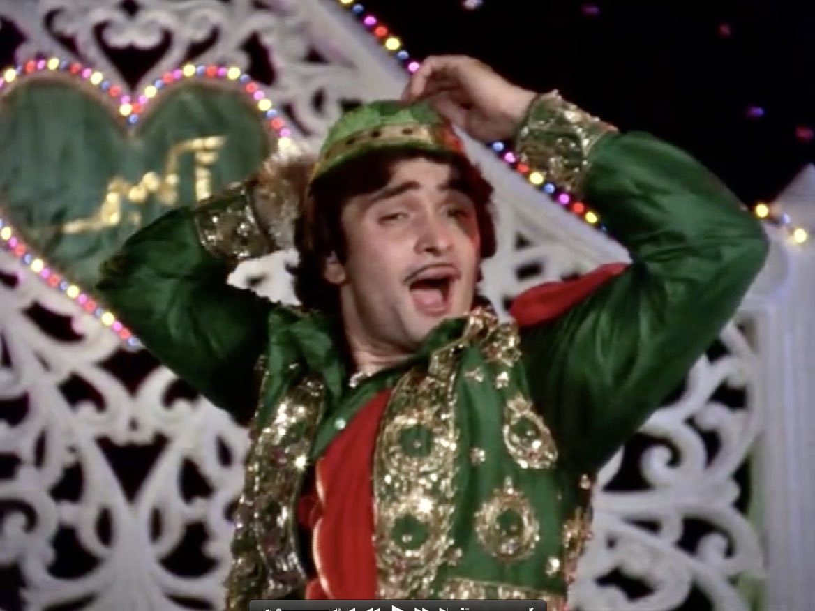 Rishi Kapoor charms his audience singing the famous qawwali “Pardah Hai Pardah” from Amar Akbar Anthony (1979)