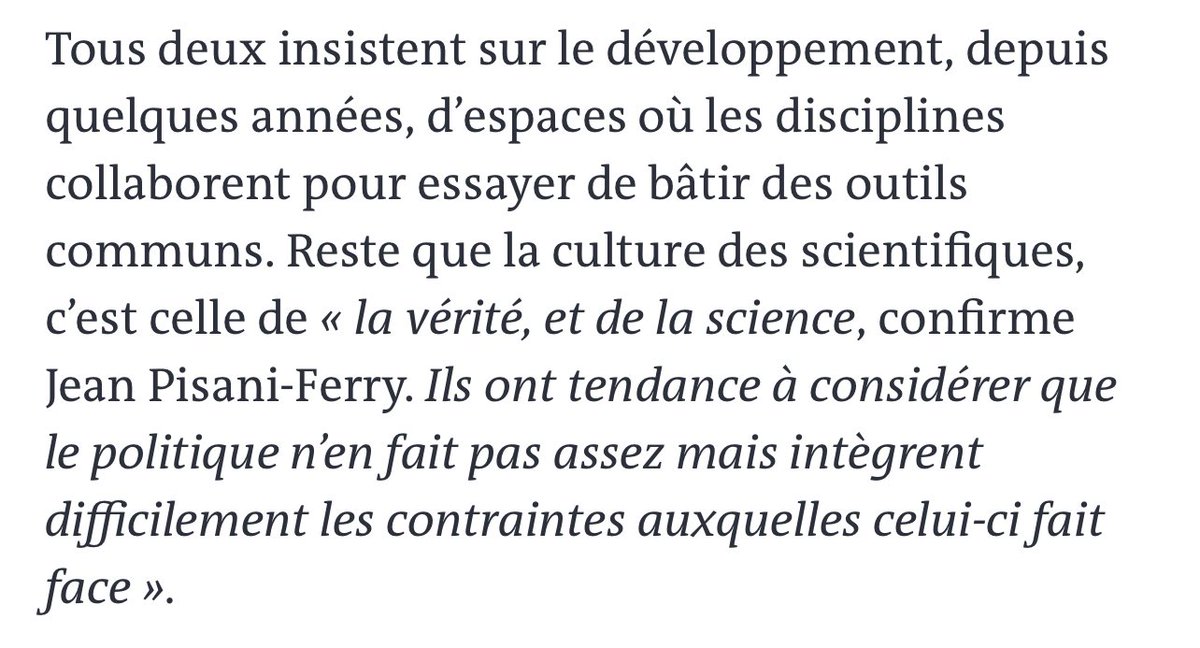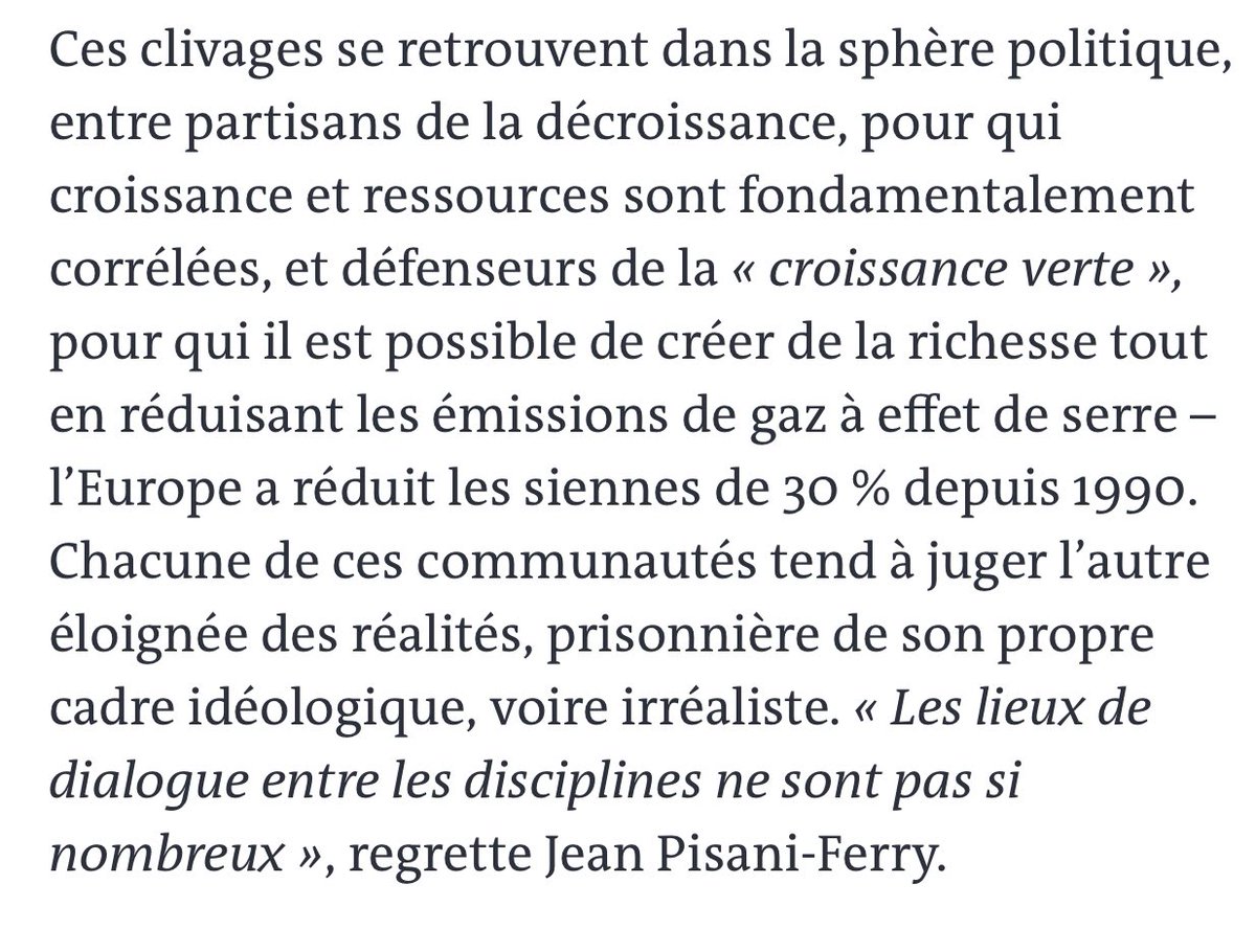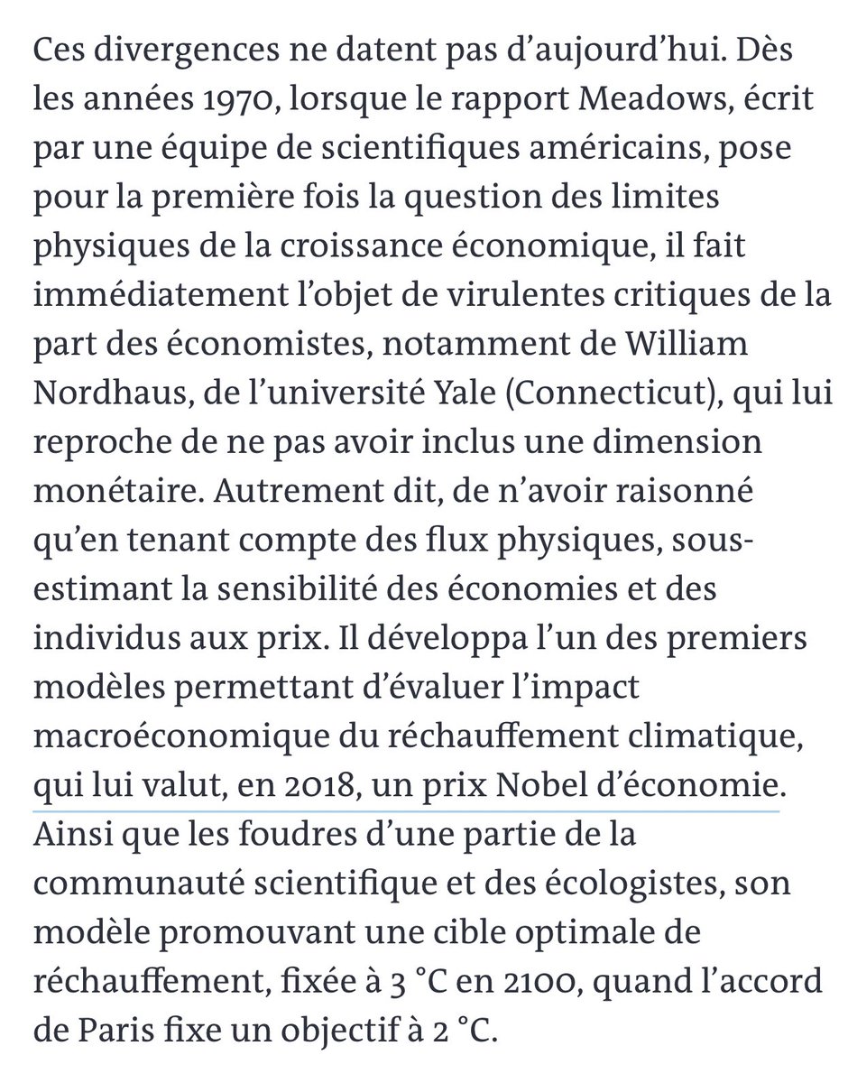Premier cliché : l’opposition entre économistes et scientifiques (sic)» , les premiers ignorant bien sûr la physique et les limites planétaires. En vérité, l’économie de l’environnement est très interdisciplinaire et discute de bcp de phénomènes physiques:
