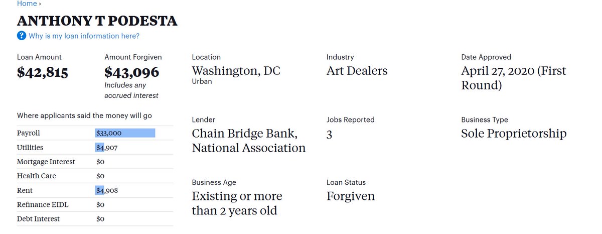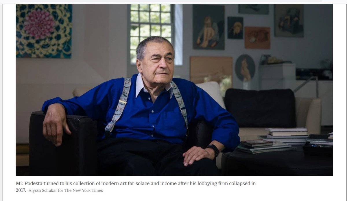 "He continued paying his curator, Debra Corrie, whose salary had previously been paid partly by the firm. They relocated some of his art & their offices to a penthouse condo in Washington that Mr. Podesta bought for $2.6 million in 2018, where they showed the art by appointment "