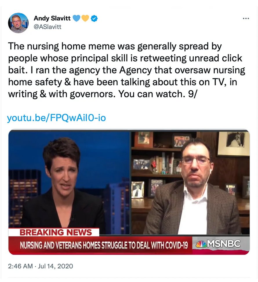 Does anybody know that @ASlavitt previously supported Governor Cuomo's disastrous nursing policies? @propublica on Cumo's nursing policies, apparently led by Slavitt, which increased deaths propublica.org/article/fire-t… /10